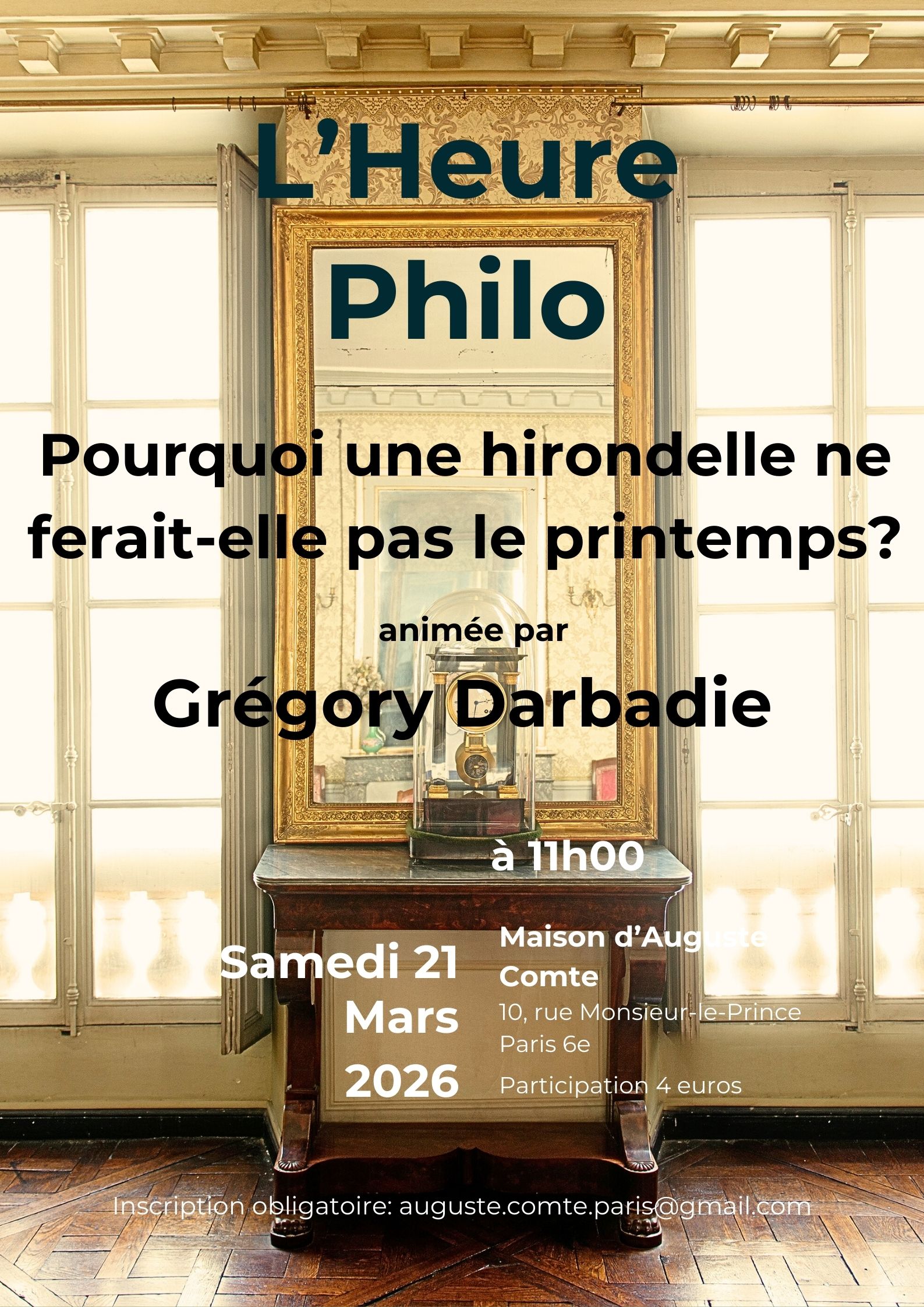 Réservation obligatoire: auguste.comte.paris@gmail.com
