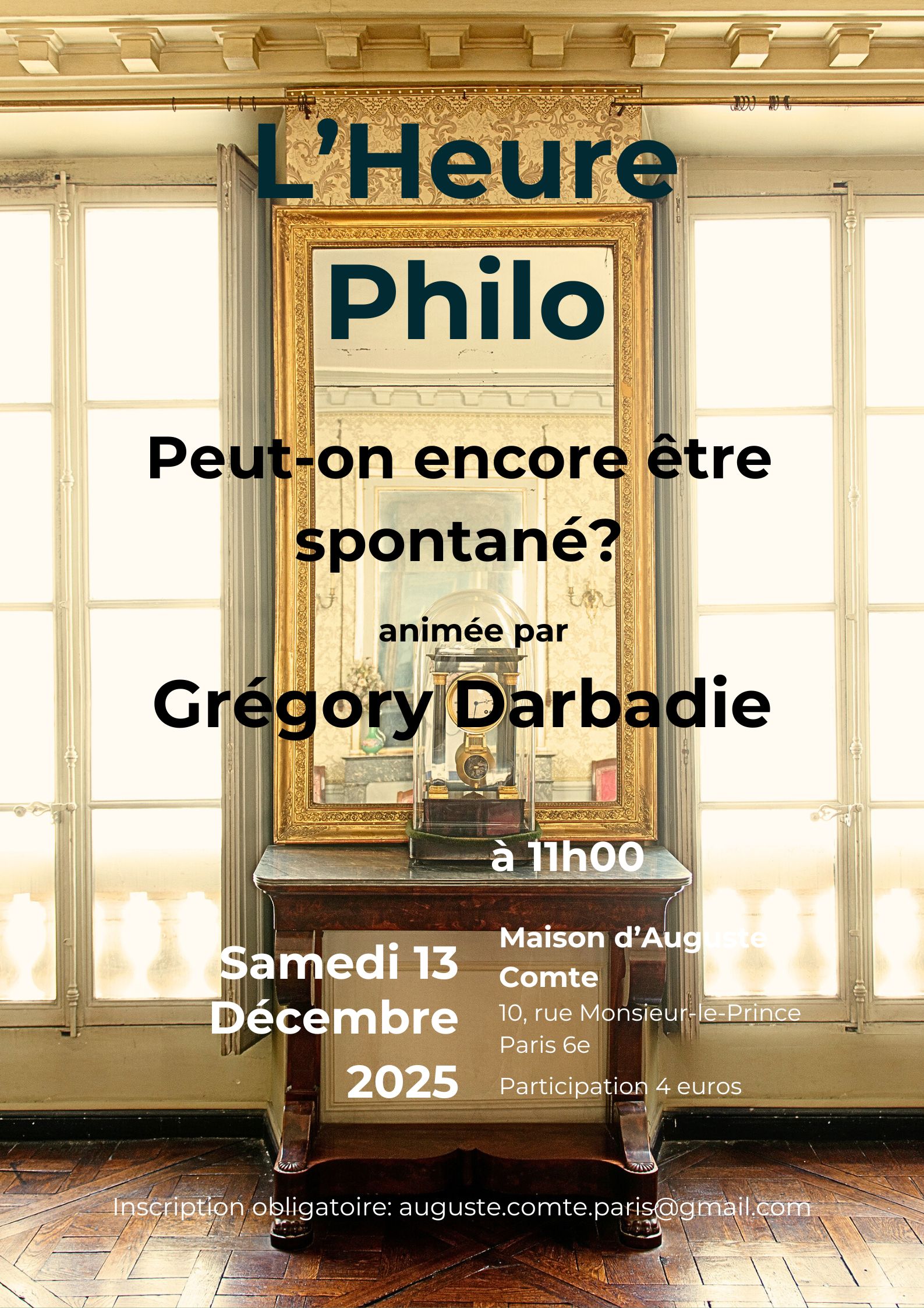 Réservation obligatoire: auguste.comte.paris@gmail.com