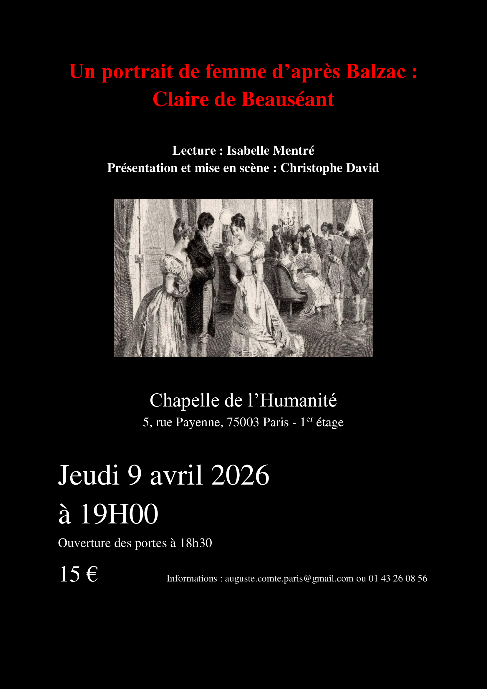 Réservation obligatoire: auguste.comte.paris@gmail.com